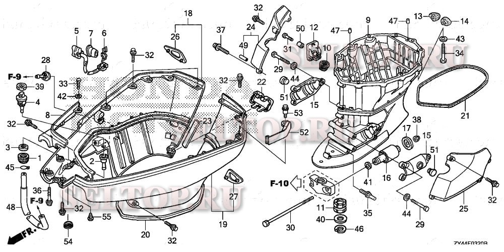 Выступающая часть для Honda BF225AK1 XXCA, взрыв-схема: