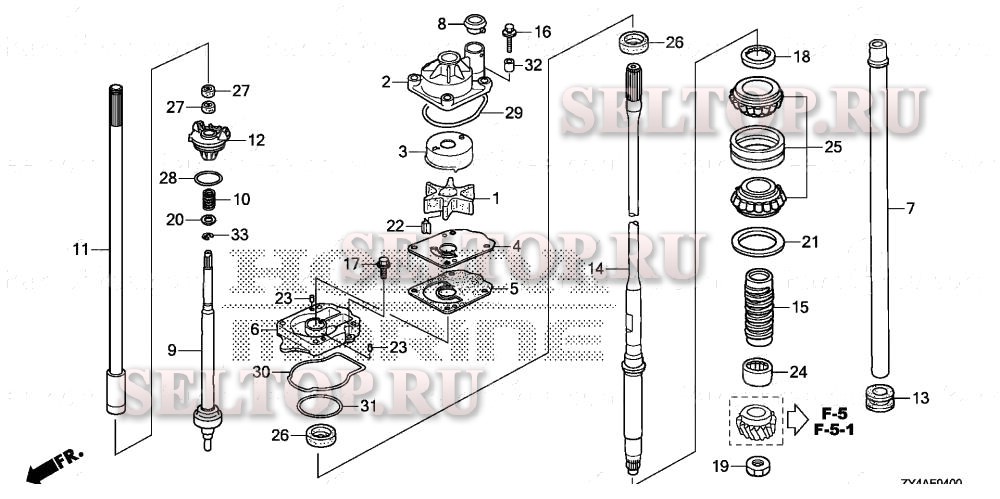 Водяной насос, вертикальный вал для Honda BF225AK3 LA, взрыв-схема: