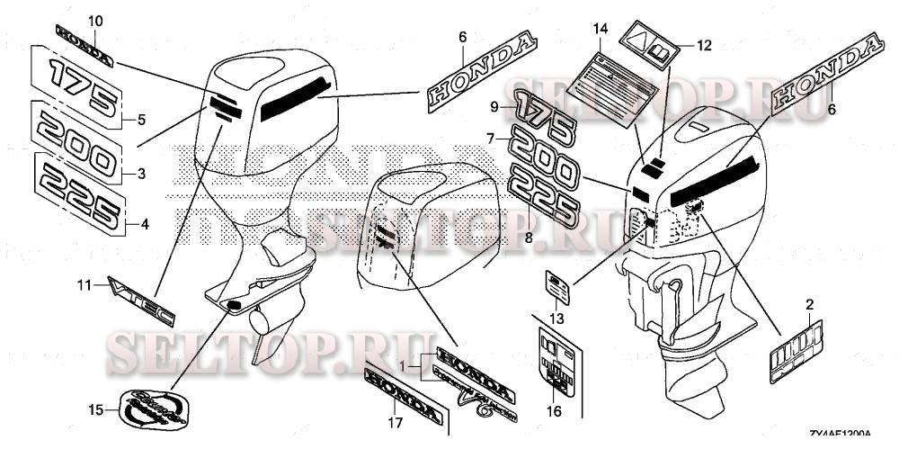 Этикетка для Honda BF225AK3 XA, взрыв-схема: