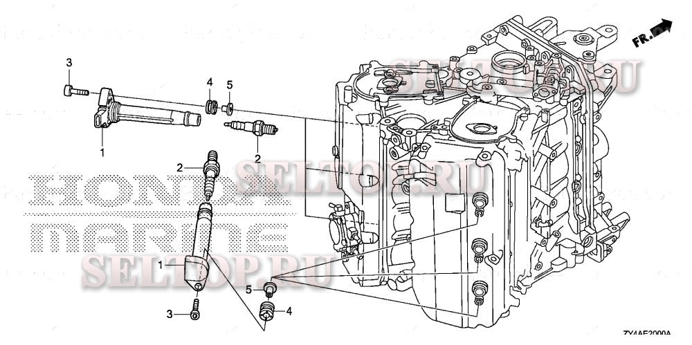 Свеча зажигания для Honda BF225AK3 XA, взрыв-схема: