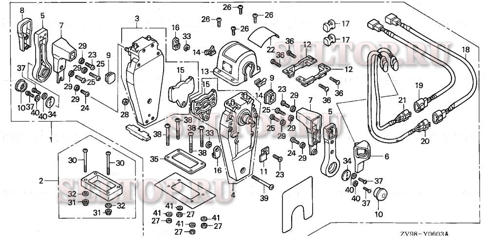 Дистанционное управление (верхняя опора двутипная) (левая) для Honda BF25A1 XRSA