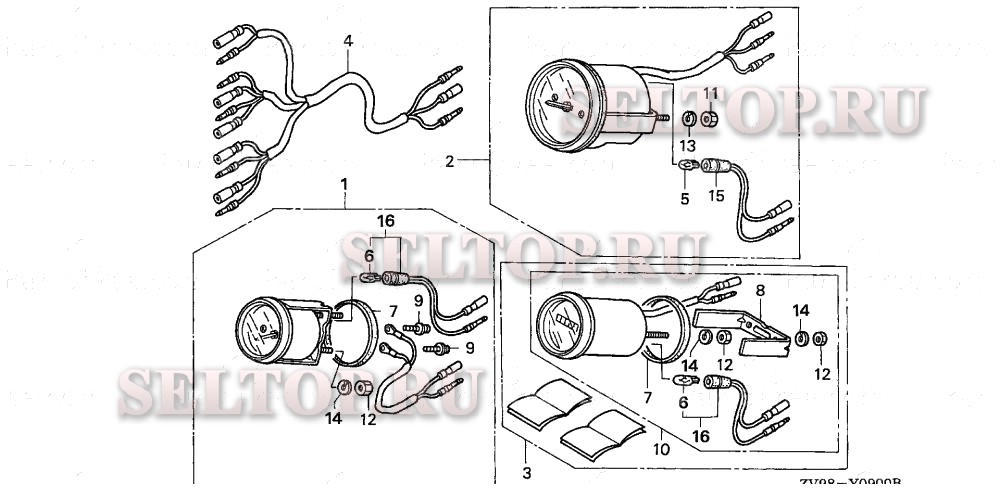 Комплект приборов для Honda BF25A1 XRSA, взрыв-схема: