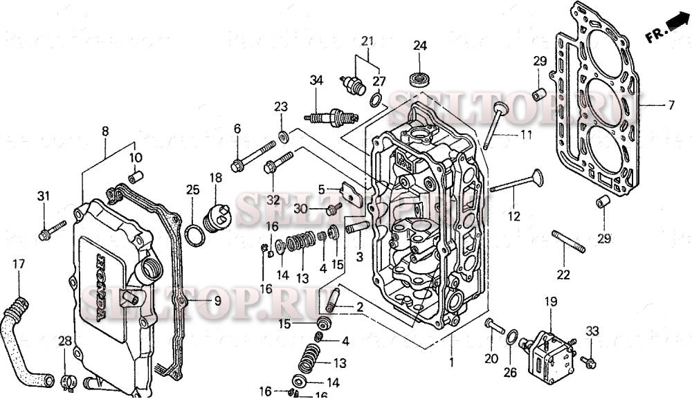 Головка цилиндра для Honda BF25AY SHA, взрыв-схема:
