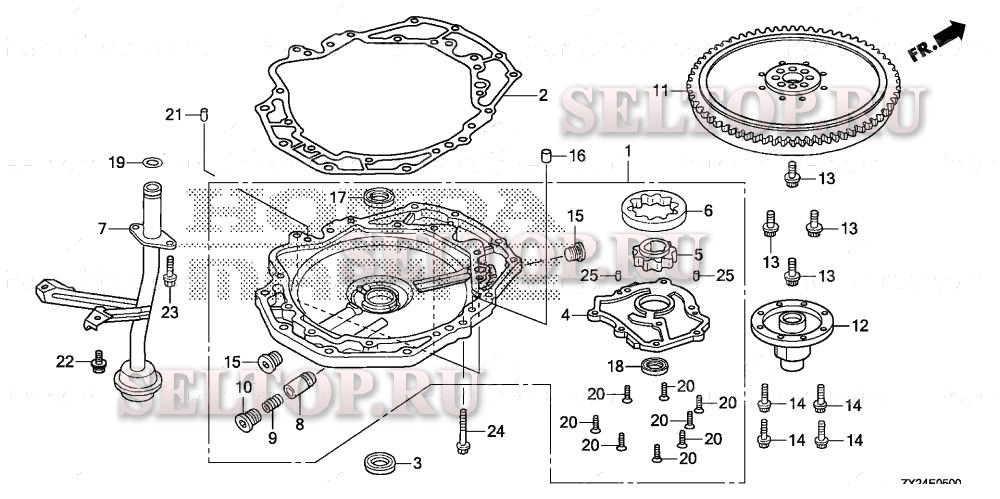 Масляный насос, маховик для Honda BF250A LA, взрыв-схема: