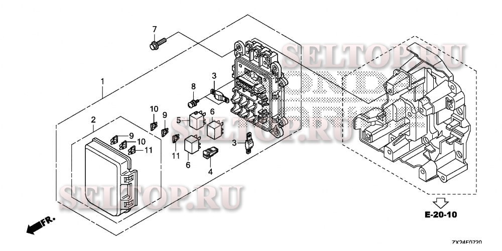 Блок предохранителей, реле для Honda BF250A LW, взрыв-схема: