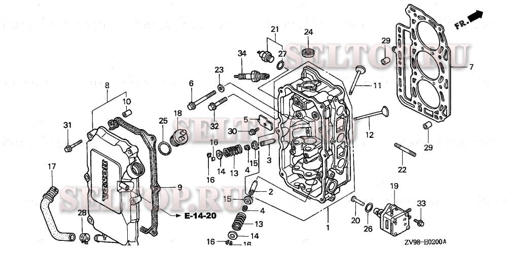 Головка цилиндра для Honda BF30A1 LHA, взрыв-схема:
