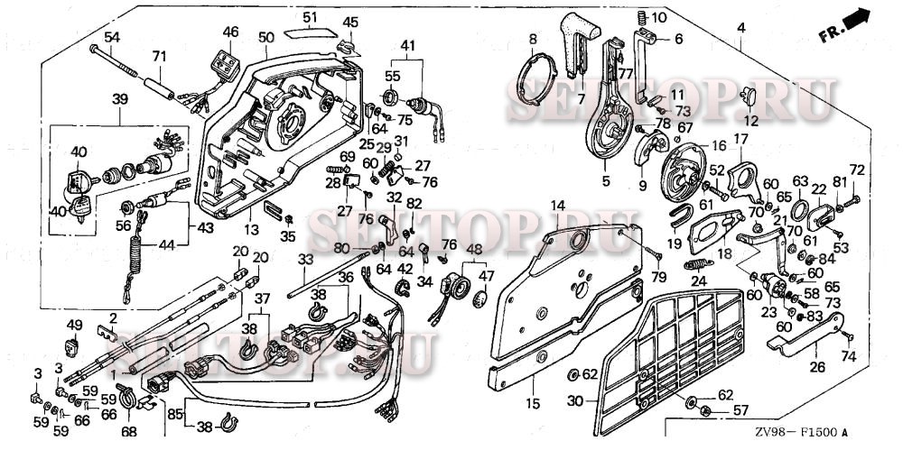Дистанционное управление для Honda BF30A1 SRSA, взрыв-схема: