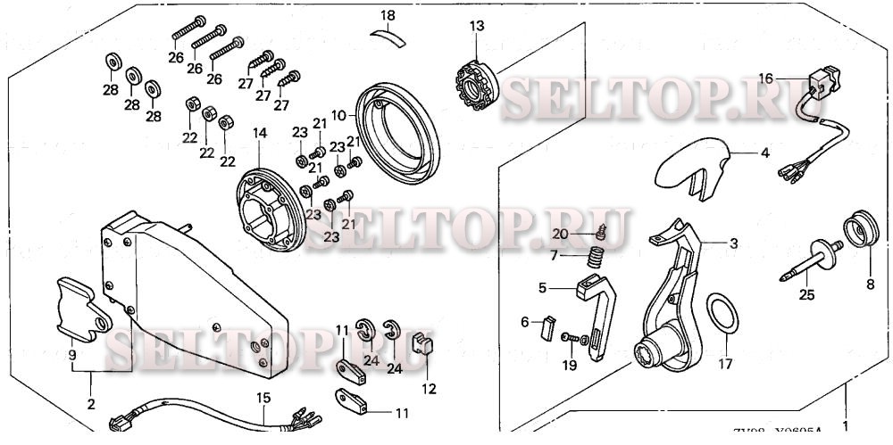 Дистанционное управление (заподлицо) (левая) для Honda BF30A1 SRSA, взрыв-схема: