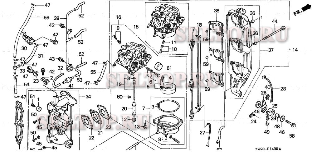 Карбюратор для Honda BF30A1 SRSA, взрыв-схема: