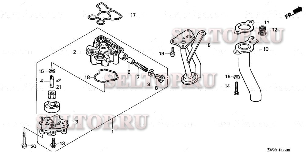 Масляный насос для Honda BF30A2 LHA, взрыв-схема: