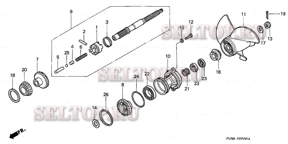 Гребной винт для Honda BF30A3 SRSA, взрыв-схема:
