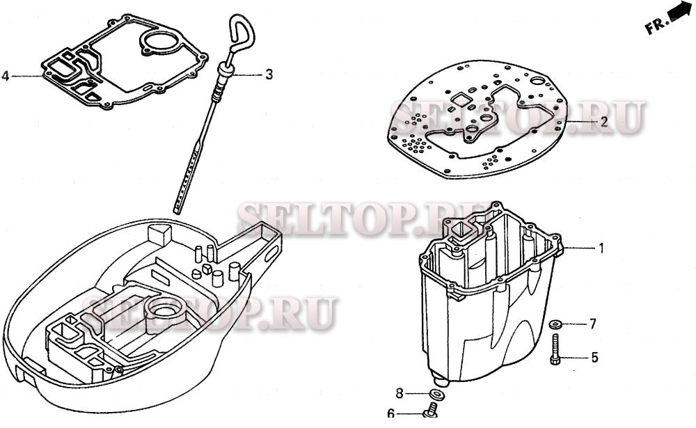 Масляный поддон для Honda BF30AY LHA, взрыв-схема:
