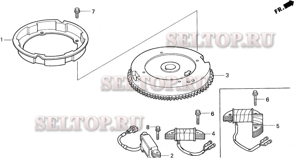 Маховик для Honda BF30AY LRSA, взрыв-схема: