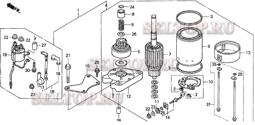 Стартер для Honda BF30AY LRSA, взрыв-схема: