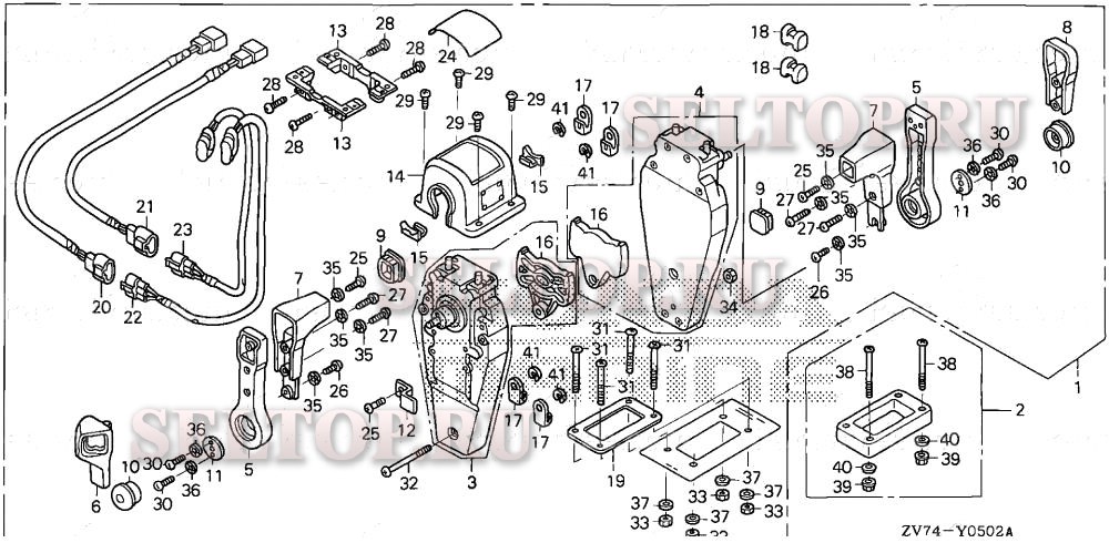 Дистанционное управление (верхняя опора двутипная) (правая) для Honda BF30D4 LRGA, взрыв-схема: