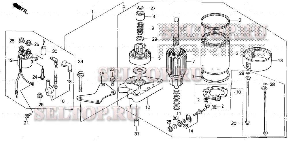 Стартер для Honda BF30D4 LRTA, взрыв-схема: