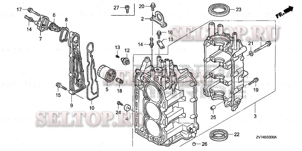 Блок цилиндров для Honda BF30D4 SHGA, взрыв-схема: