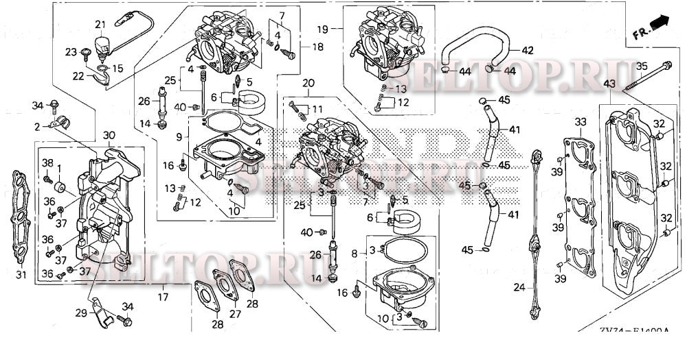 Карбюратор в сборе для Honda BF30D4 SHGA, взрыв-схема: