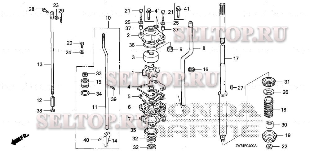 Водяной насос для Honda BF30D4 SHGA, взрыв-схема:
