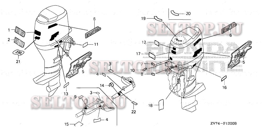 Этикетки для Honda BF30D5 LHA, взрыв-схема: