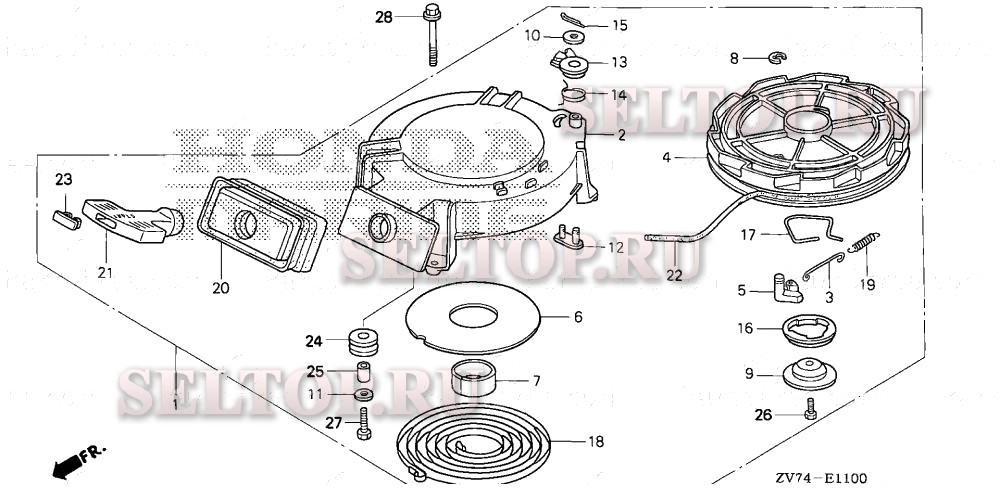 Ручной стартер для Honda BF30D5 LHA, взрыв-схема: