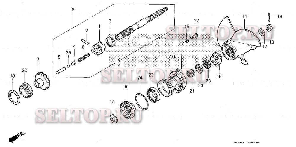 Карданный вал для Honda BF30D5 SRTA, взрыв-схема: