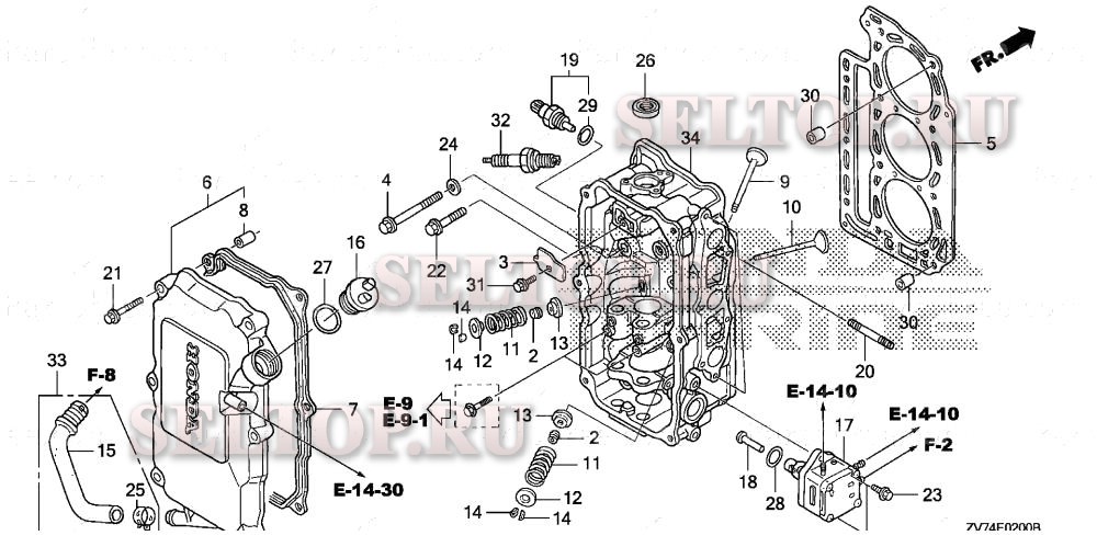 Головка цилиндра для Honda BF30D6 LRGA, взрыв-схема: