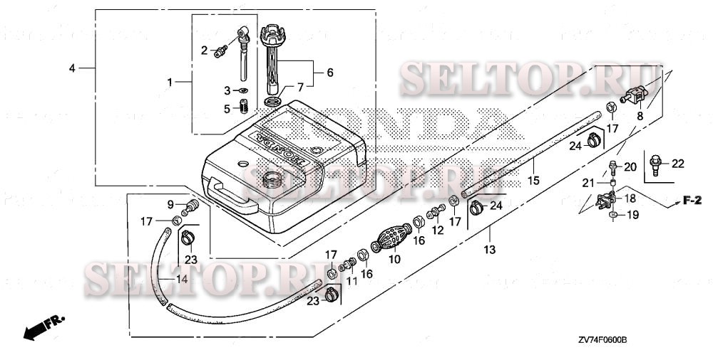Топливный бак для Honda BF30D6 SRTA, взрыв-схема: