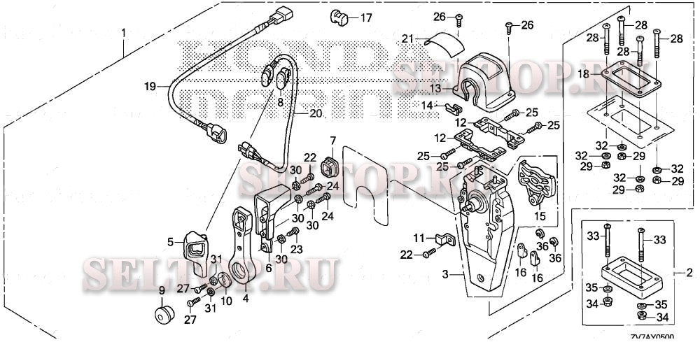 Дистанционное управление (верхняя опора однотипная) (правая) для Honda BF30DK2 SRTA