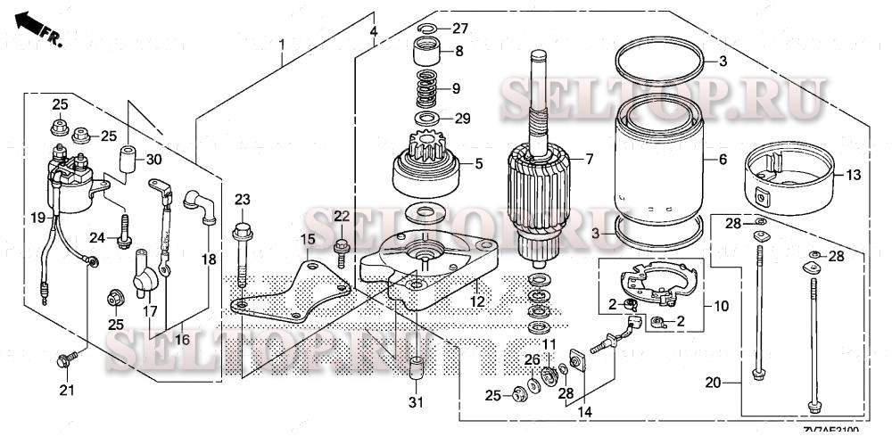 Стартер для Honda BF30DK2 SRTA, взрыв-схема: