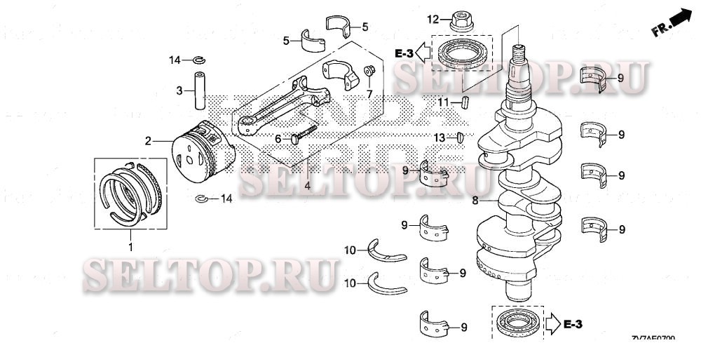 Коленвал, поршень для Honda BF30DK3 SRTA, взрыв-схема:
