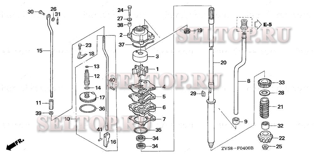 Водяной насос для Honda BF40A1 LHTA, взрыв-схема: