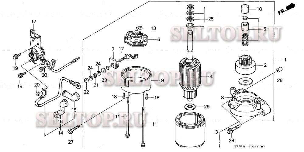 Стартер для Honda BF40A2 LHA, взрыв-схема: