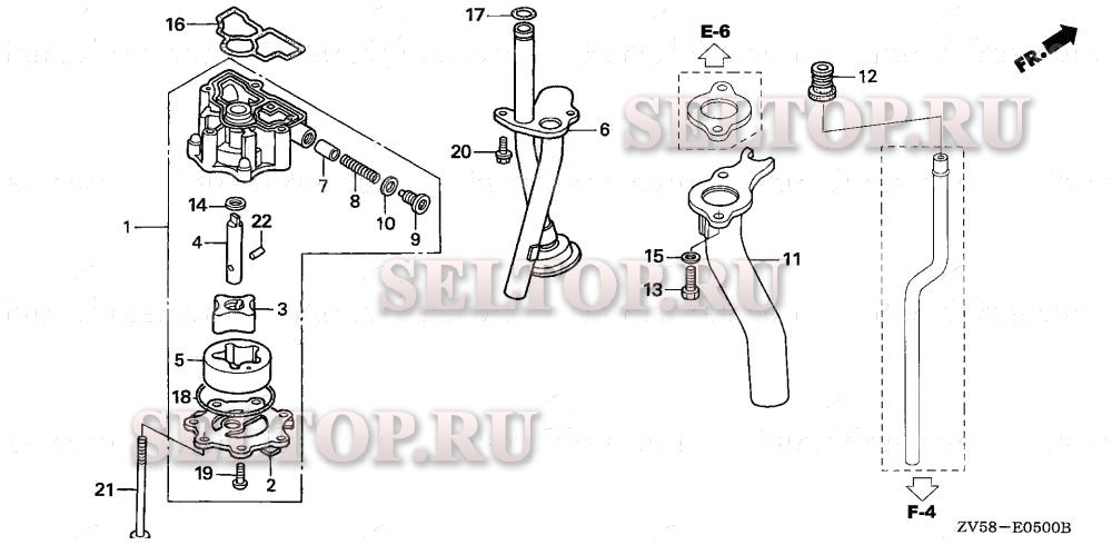 Масляный насос для Honda BF40A2 LRA, взрыв-схема: