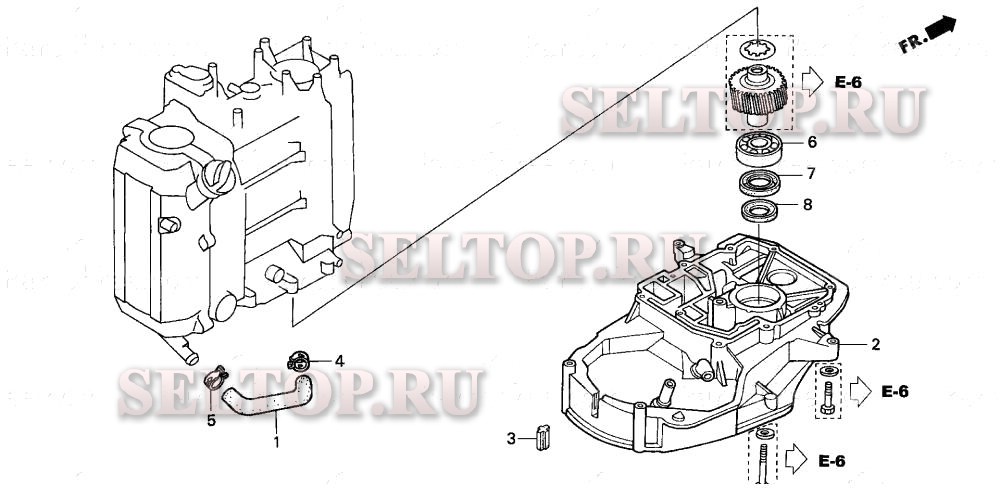 Основной корпус редуктора для Honda BF40A3 LRA, взрыв-схема: