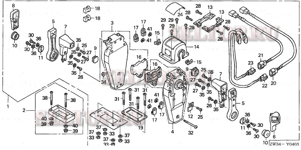 Дистанционное управление (верхняя опора двутипная) (левая) для Honda BF40A5 LRTA
