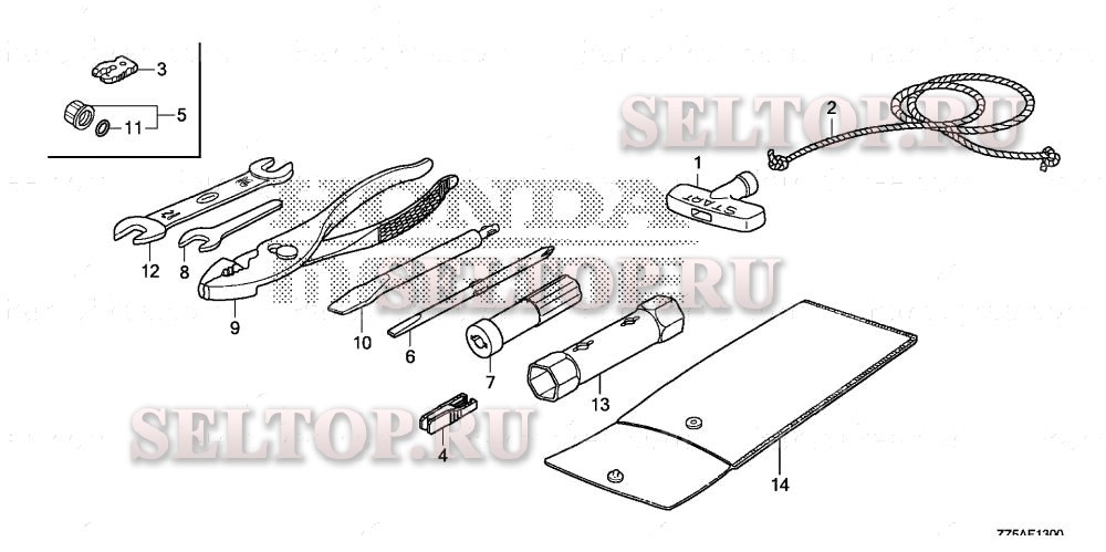 Инструмент, прочие запчасти для Honda BF40DK2 LRTA, взрыв-схема: