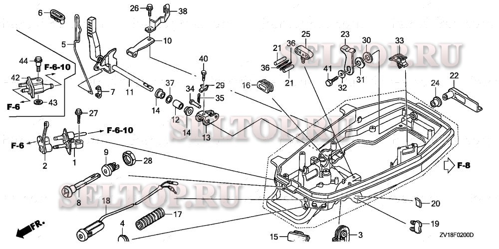 Ось вилки переключения, рычаг блокировки тормоза для Honda BF5AK2 LA, взрыв-схема: