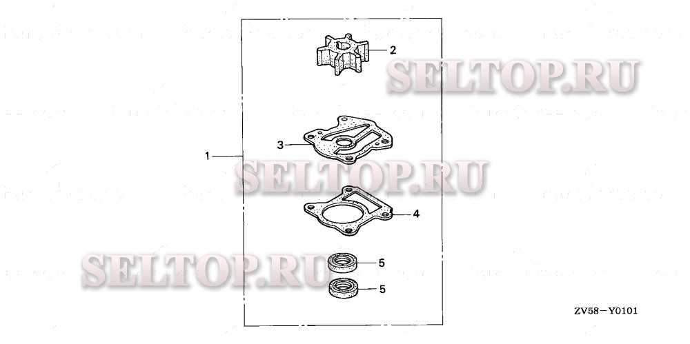 Крыльчатка насоса для Honda BF50A2 LRTA, взрыв-схема: