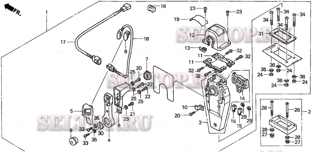 Дистанционное управление (верхняя опора однотипная) (правая) для Honda BF50A2 SRJA