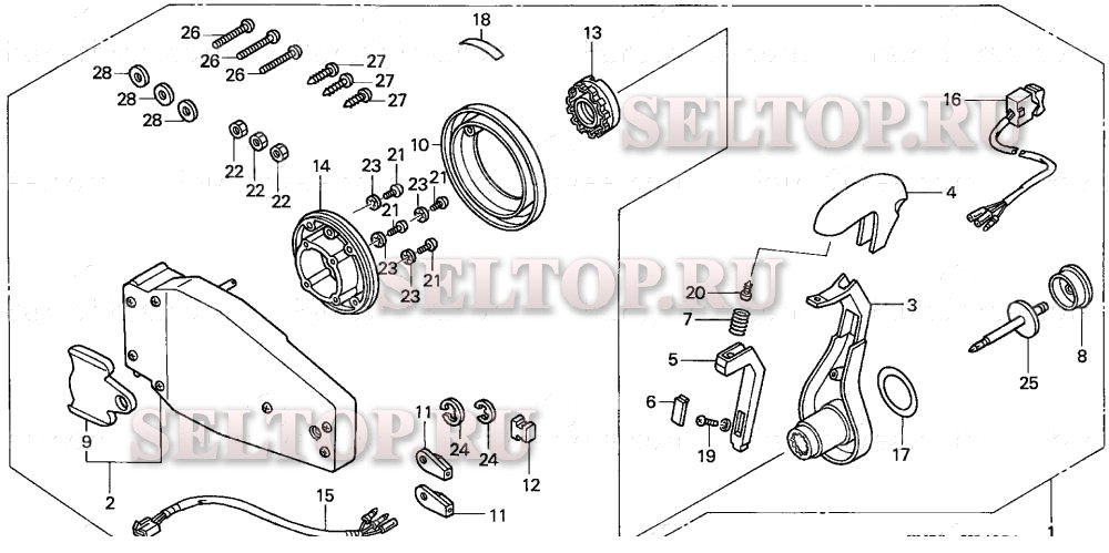Дистанционное управление (заподлицо) (левая) для Honda BF50A2 SRJA