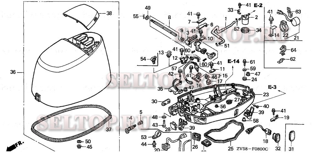 Крышка двигателя, нижняя часть корпуса для Honda BF50A2 SRJA, взрыв-схема: