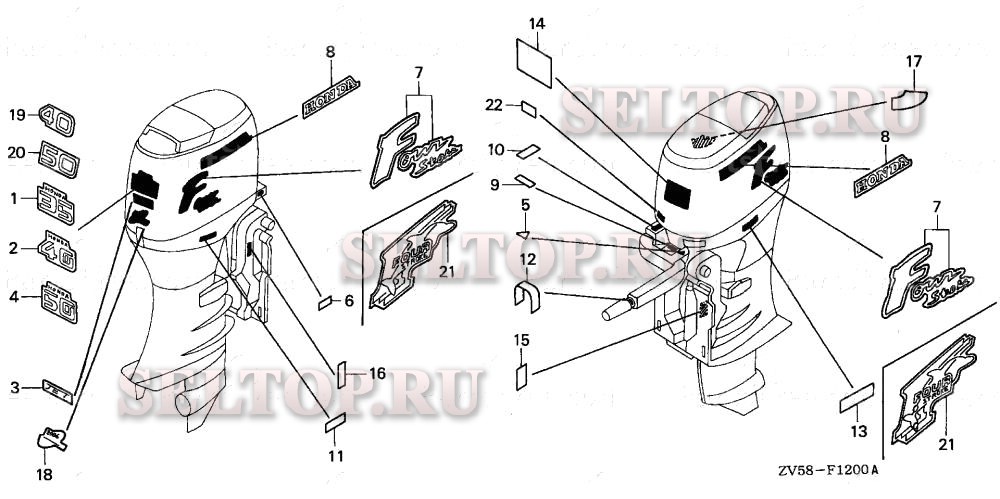 Этикетки для Honda BF50A3 XRTA, взрыв-схема: