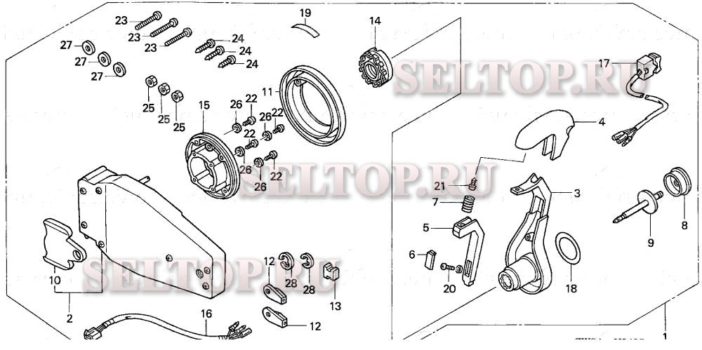 Дистанционное управление (заподлицо) (левая) для Honda BF50A5 XRTA