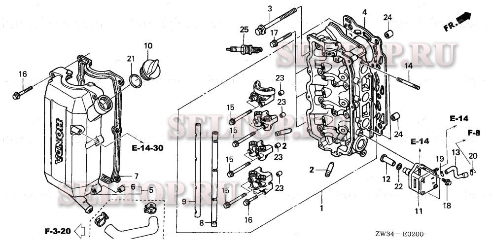 Головка цилиндра для Honda BF50A5 XRTA, взрыв-схема: