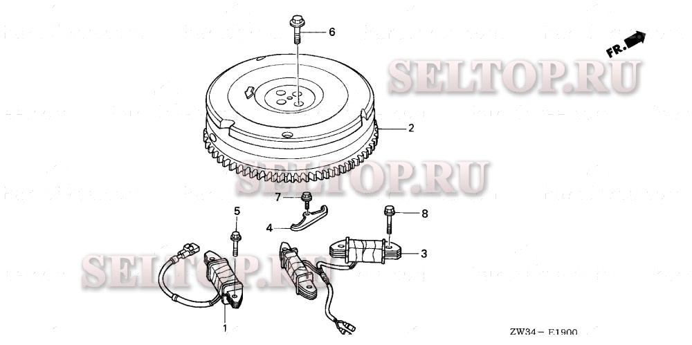 Маховик для Honda BF50A5 XRTA, взрыв-схема: