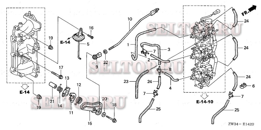 Штанга дросселя для Honda BF50A5 XRTA, взрыв-схема: