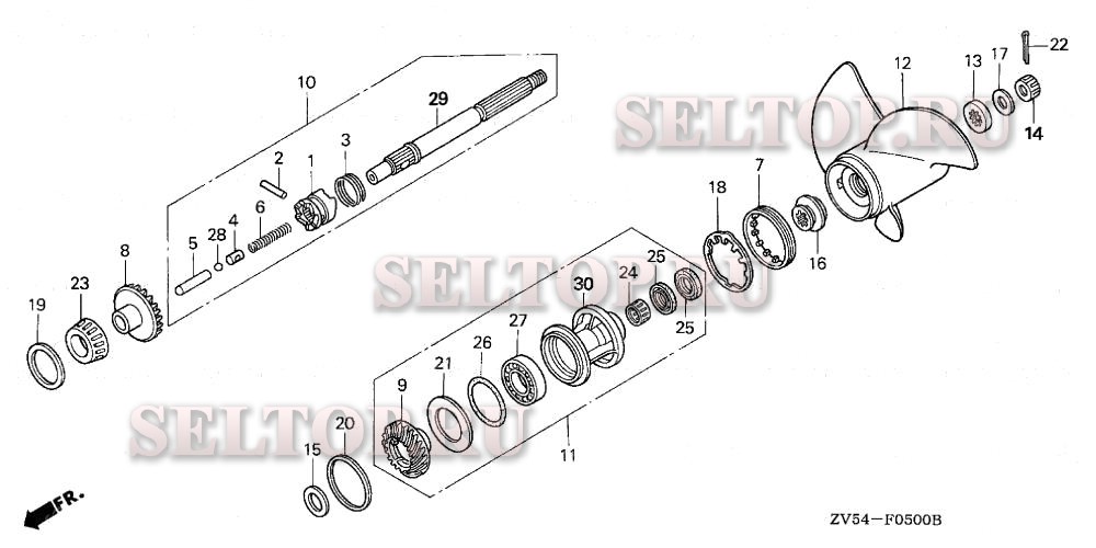 Гребной винт для Honda BF50AX LHTA, взрыв-схема: