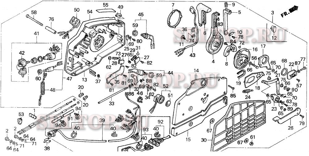 Дистанционное управление для Honda BF50AX LRA, взрыв-схема: