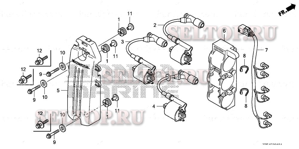 Катушка зажигания для Honda BF50D LRTA, взрыв-схема: